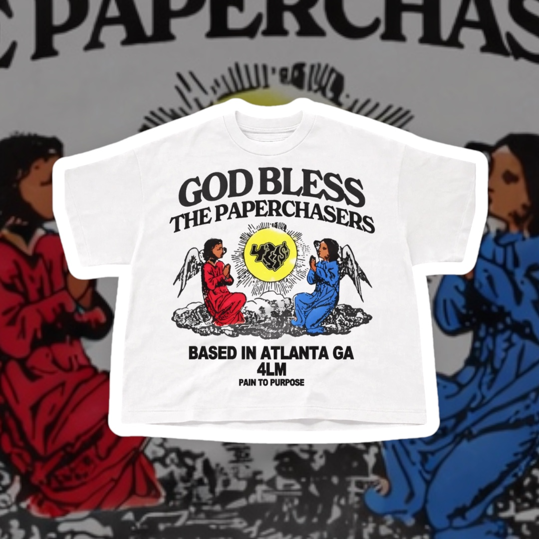 Shop › God Bless The PaperChasers T-Shirt Image 1 of 1 God Bless The PaperChasers T-Shirt $45.00 Color: Select Color White Size: Select Size S M L XL 2XL 3XL 4XL 5XL 6XL Add To Cart Added!